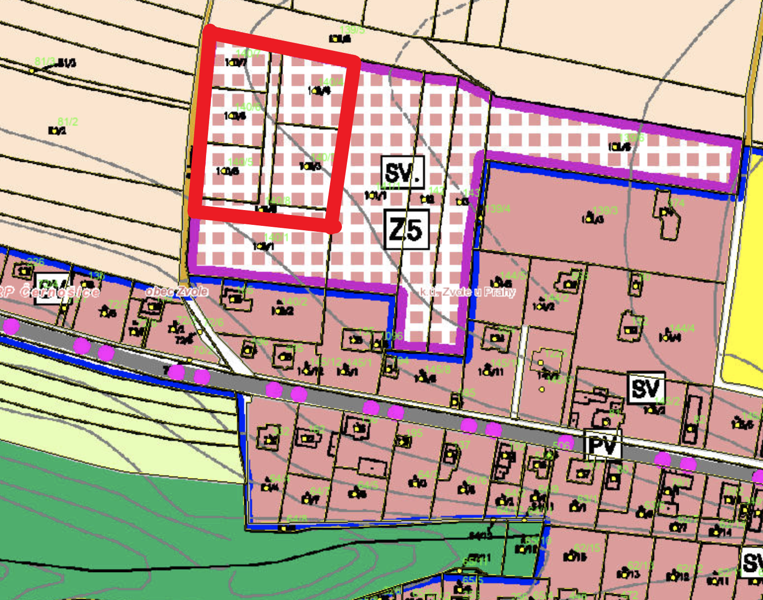 územní plán obce Zvole, výkres - jen pozemek a okolí